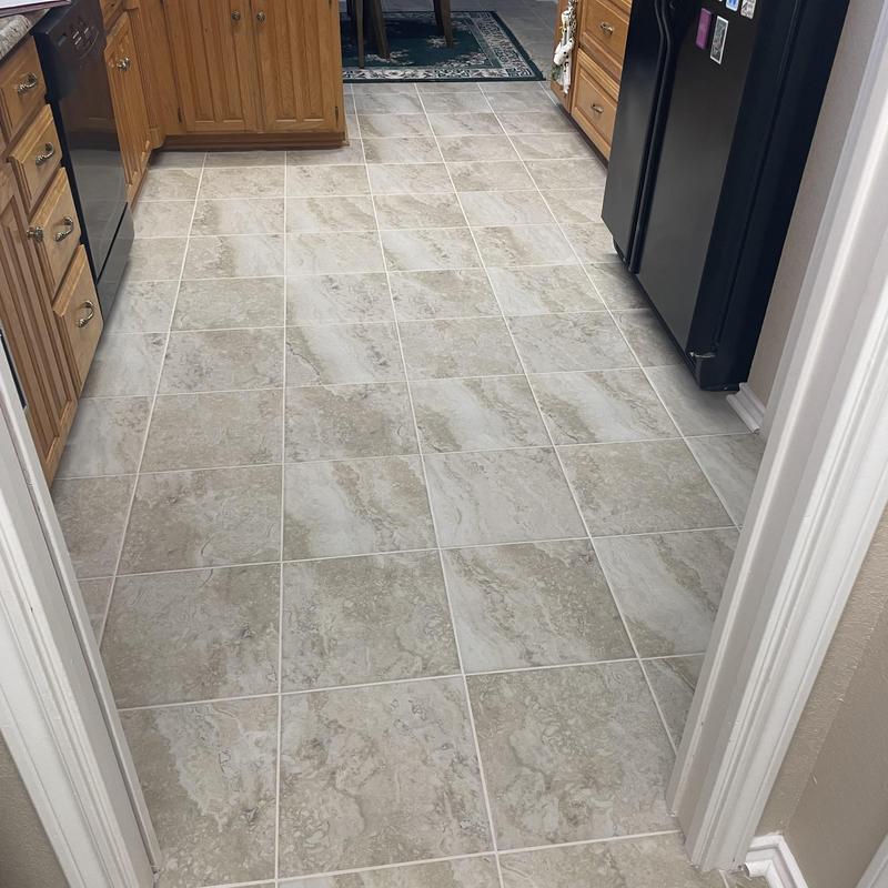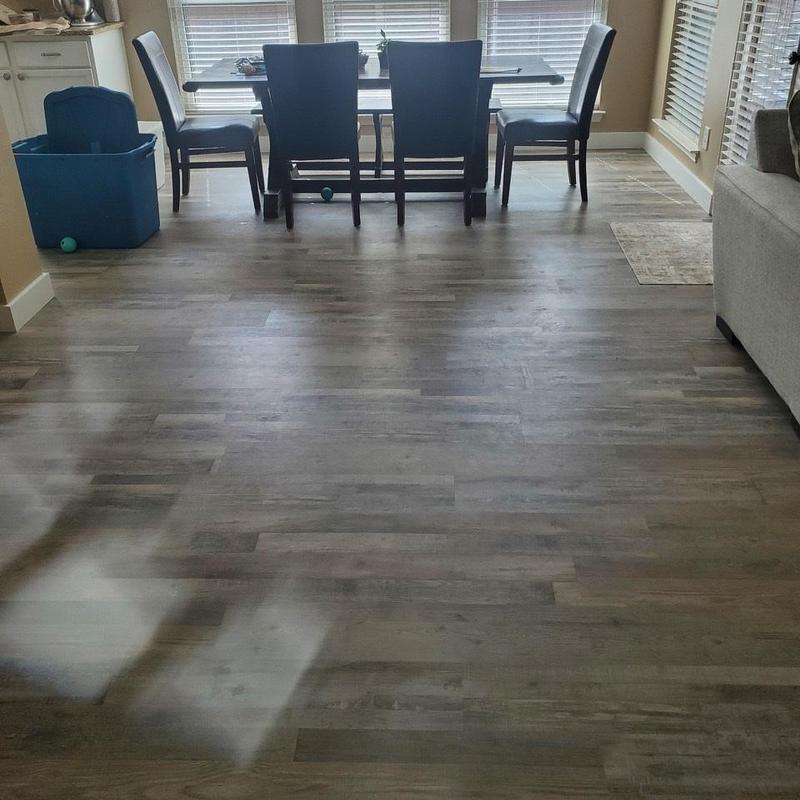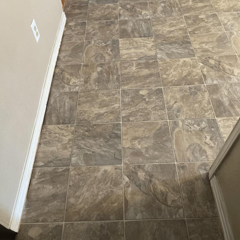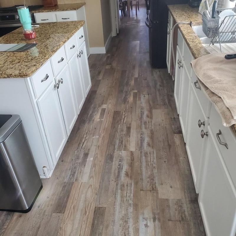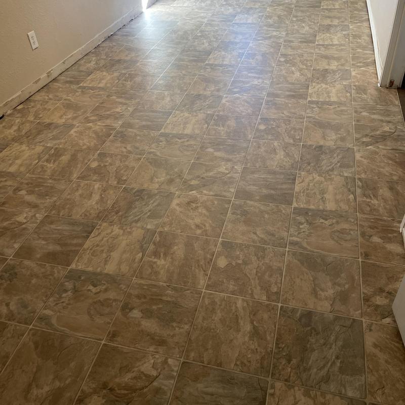 DFW Flooring Warehouse completed a vinyl flooring installation project in Arlington, Texas. The service included removing old roll vinyl, preparing the area, installing new roll vinyl in the kitchen and dining area, adding white shoe molding, and disposing of the old flooring.