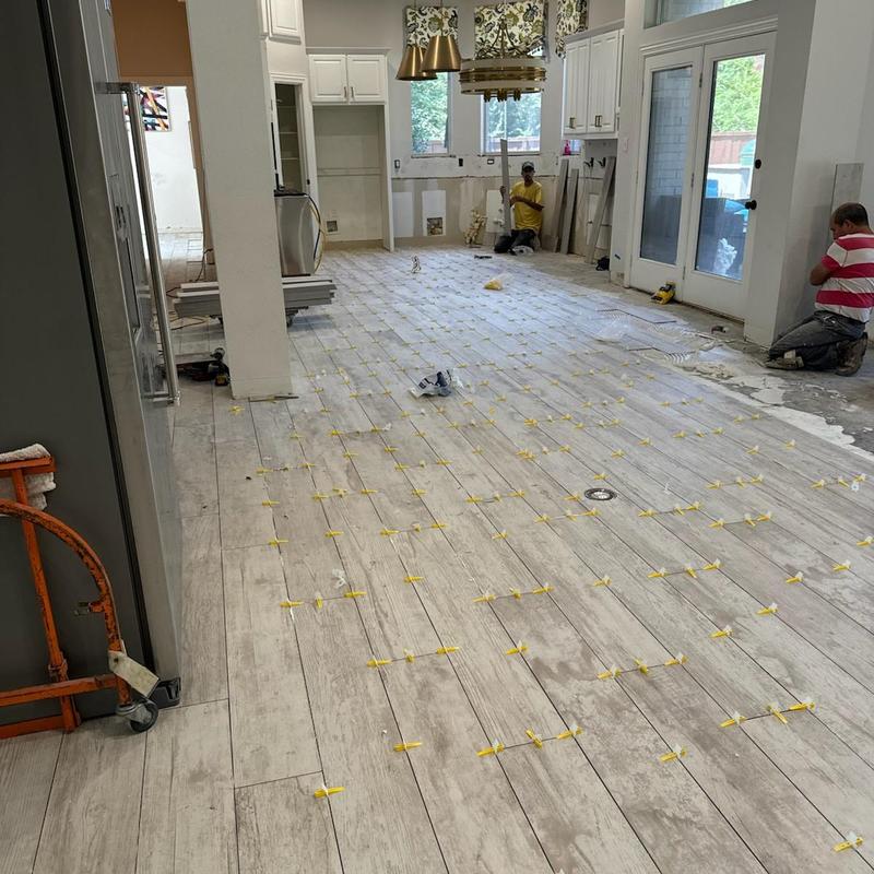 DFW Flooring Warehouse removed outdated tiles and installed 7-foot wood grain tiles in Arlington, Texas. These long-format wood-look tiles offer a modern surface solution with a durable finish. The team ensured precise removal and alignment for a clean and uniform result in the updated space.