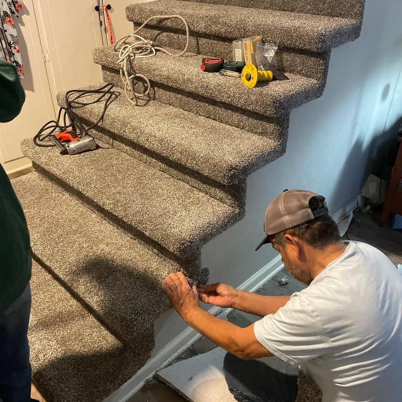 DFW Flooring Warehouse installed carpet on a staircase in Fort Worth, Texas. The team measured the steps, cut the material to fit, and secured the carpet for safe and even coverage. This service helped improve traction and comfort on the stairs in a residential setting.