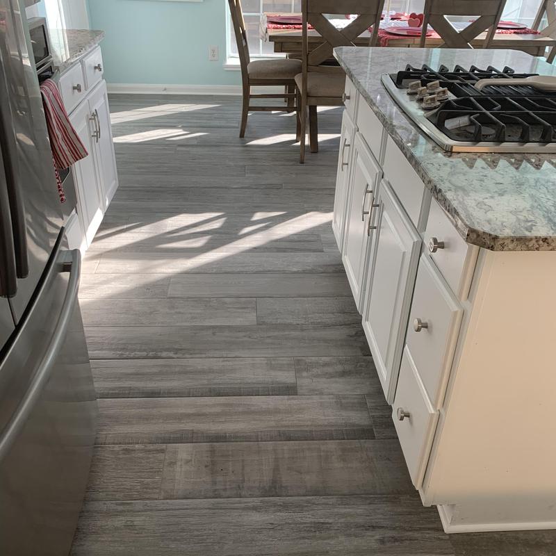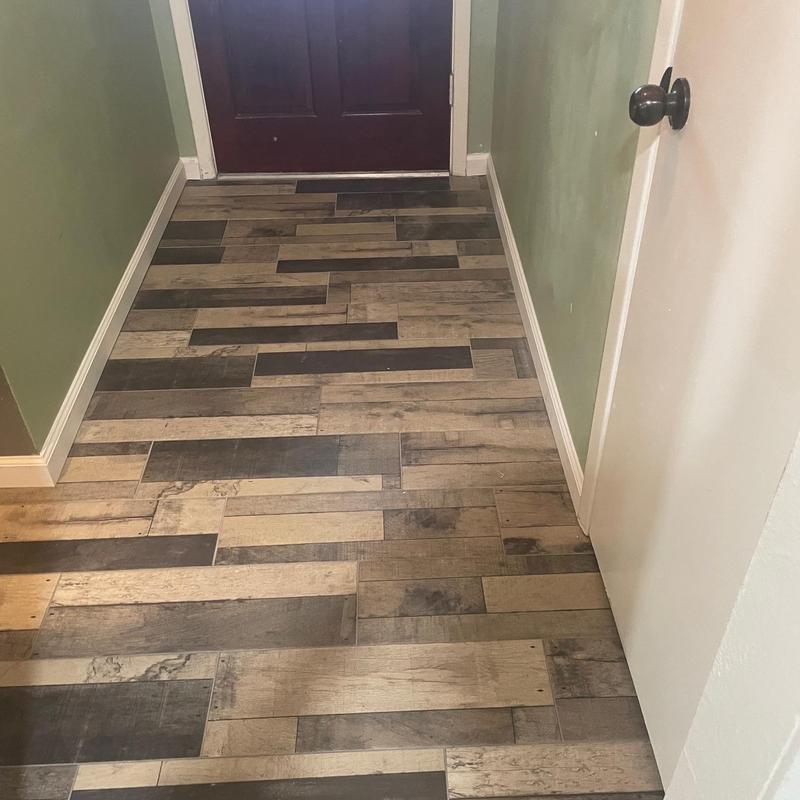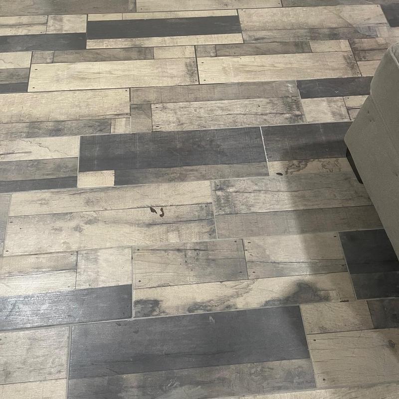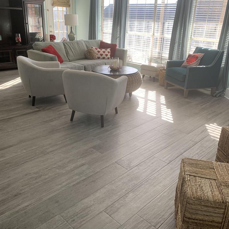 DFW Flooring Warehouse installed new wood grain porcelain tile in Arlington, Texas. The team removed existing flooring and placed durable tile that mimics the look of natural wood. This type of tile offers a solid surface with the appearance of wood and is suitable for spaces that require water resistance and easy maintenance.