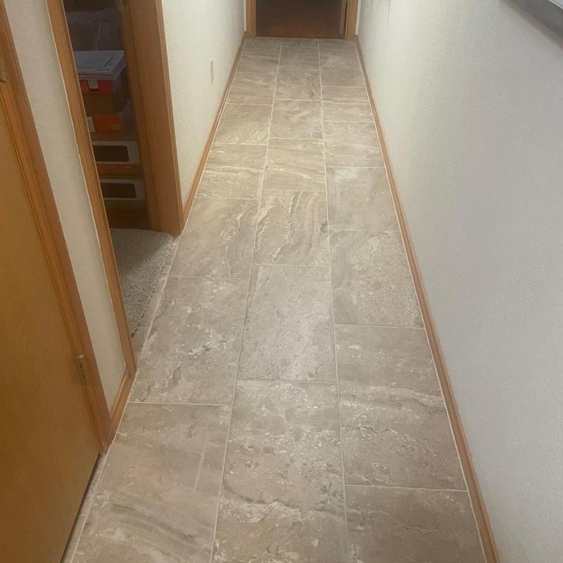 DFW Flooring Warehouse removed old carpet and vinyl in a hallway and bathroom and installed new Codicer Chester Noce 13x26 tile in Fort Worth, Texas. The update replaced worn surfaces with durable tile flooring suited for high-traffic areas and moisture-prone spaces.