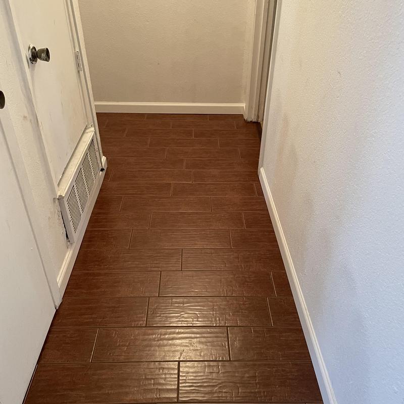 DFW Flooring Warehouse extended a wood-look tile floor in a hallway in Fort Worth, Texas. The team matched the existing tile and completed the installation to maintain a consistent surface throughout the space.