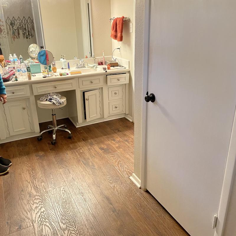 DFW Flooring Warehouse installed SPC planks in an upstairs bedroom, hallway, and bathroom in Arlington, Texas. This project improved flooring consistency across multiple rooms with durable, water-resistant surfaces suited for residential use.