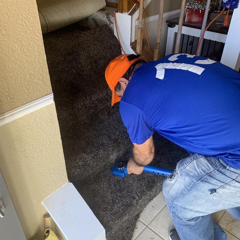 DFW Flooring Warehouse installed new flooring in two upstairs bedrooms, bedroom closets, an upstairs hallway, stairs, and a downstairs den in Arlington, TX. The team removed the existing carpet and padding and moved standard furniture to complete the project efficiently.