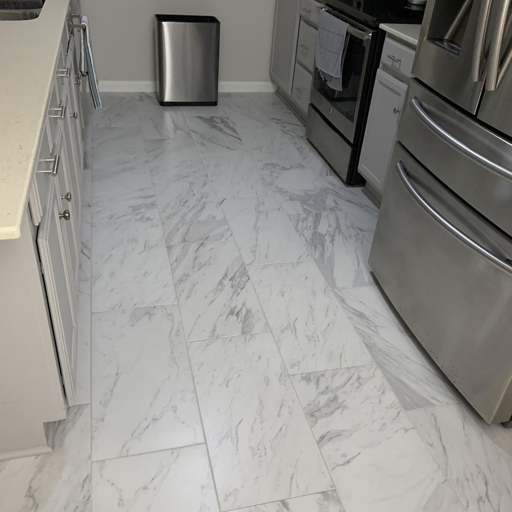 DFW Flooring Warehouse installed 12x24 marble-look porcelain tile on bathroom walls and floors in North Richland Hills, Texas. The project included precision placement and secure fitting to ensure durability and a clean finish. This work improved surface protection and simplified maintenance across both spaces.